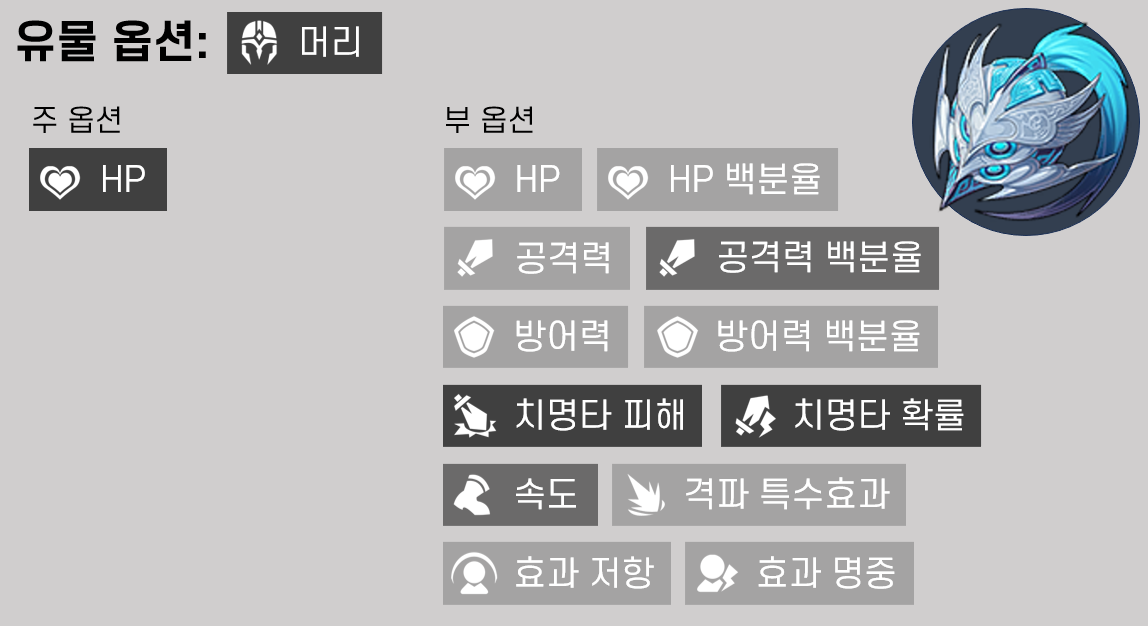 2-3. (혹시 모르니 +3까지 긁어볼래) 부 옵션 3개, 짙은 색 유효 옵션 1개 이상이면 강화, 신규 옵션 무효 시 폐기