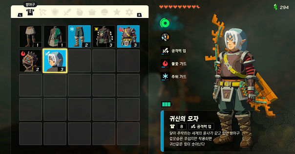 젤다의 전설 왕가의 눈물 출시 이후 많은 분들이 재미있게 플레이하고 계십니다. 전작 야생의 눈물과 이번 왕가의 눈물 모두 링크가 입을 수 있는 옷에 특수한 효과가 붙어 있는 경우가 많은데요. 추위 저항, 더위 저항 등 다양한 효과들이 있습니다. 하지만, 게임 중 가장 유용한 효과라고 하면 역시 공격력 증가가 아닐까 싶은데요. 이번 포스팅에서는 공격력 증가 효과가 붙어 있는 모자인 '귀신의 모자' 를 얻는 방법에 대해 알아보도록 하겠습니다.