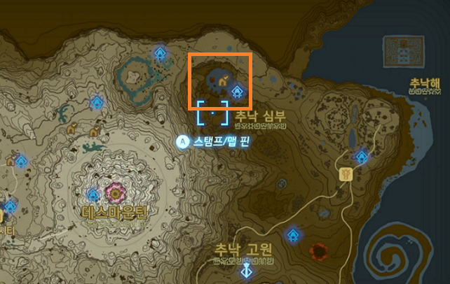 귀신의 모자는 해골 연못이라는 곳에 있습니다. 말 그대로 해골 모양의 연못인데요. 위치는 데스마운틴 북동쪽입니다. 아래 사진을 참고하세요. 해골 연못 외에도 몇 군데 사당의 위치 역시 표시해 두었으니 혹시 해당 사당을 찾지 못하셨던 분들은 참고해 주세요. 동굴 및 마구간에 대한 정보도 포함되어 있습니다.