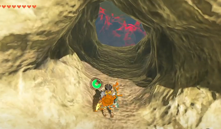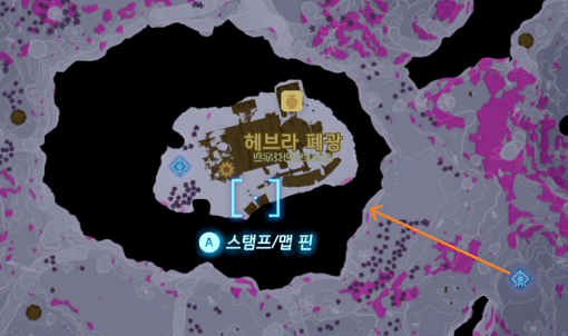 탐색이 완료된 위 지도를 보시면 이상한 점이 있습니다. 우리의 목적지인 헤브라 폐광에 들어갈 방법이 없네요. 이 위치는 지상 기준으로 리토족 마을이 있는 위치인데요. 리토족 마을 주변에 위치한 호수가 지저에서는 링크의 길을 막는 벽이 되어 있는 것을 확인하실 수 있습니다. 결국 지저에서는 헤브라 폐광으로 갈 방법이 없다는 뜻인데요. 이 시점에서 위에 소개드린 이가단의 노트를 떠올려 보시면 헤브라 폐광으로 가는 숨겨진 통로를 찾아야 한다는 사실을 쉽게 알 수 있습니다. 하지만 그 숨겨진 통로를 찾기가 다소 어려운데요. 자세한 위치는 아래 스크린샷을 참고해 주세요.
